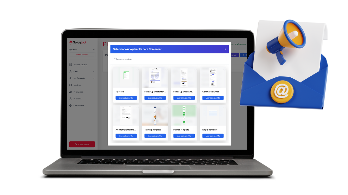 Diseñá correos sin código con el editor drag & drop de Spicytool. Usá plantillas optimizadas, personalizá cada detalle y previsualizá tus emails en tiempo real, sin complicaciones.